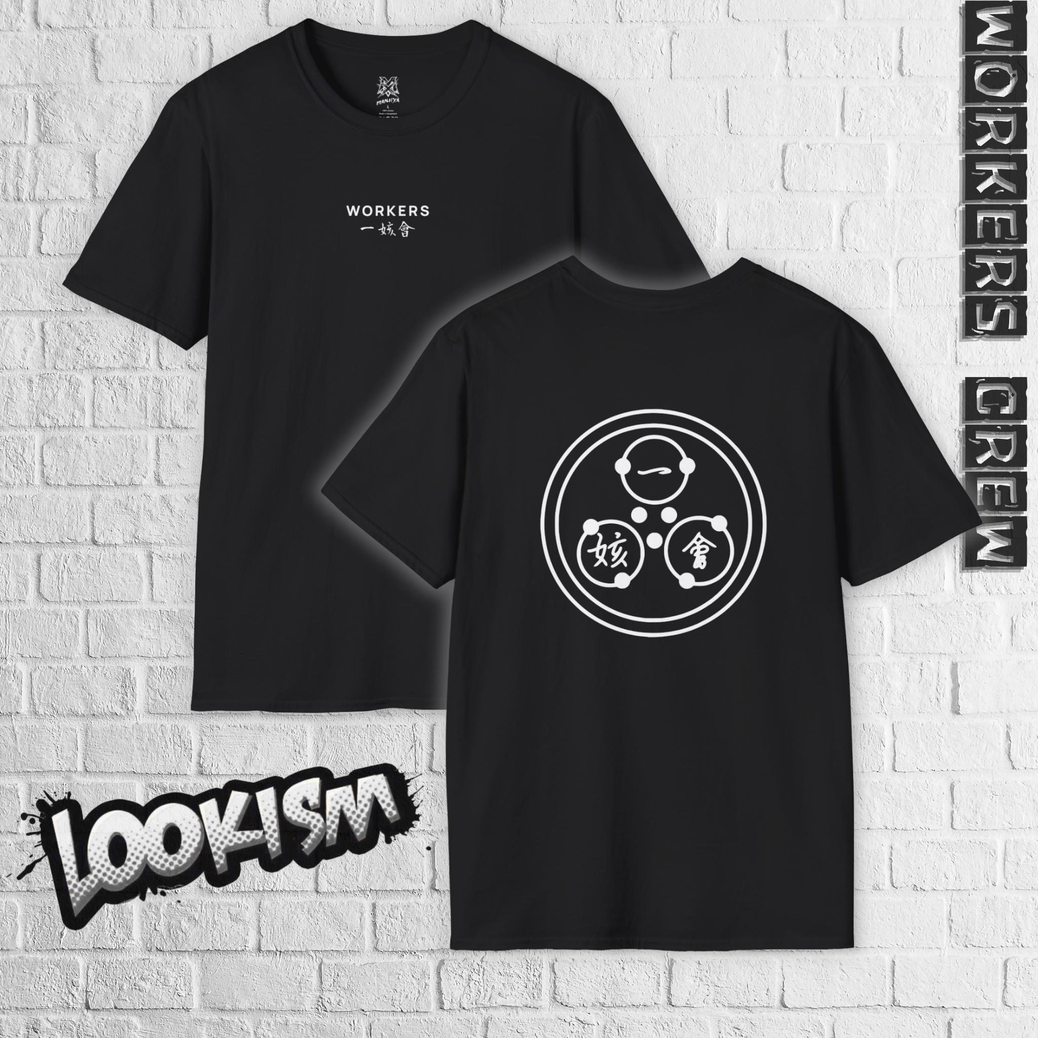 A Unisex Workers Crew T-Shirt inspired by Lookism, featuring a sharp corporate-style font on the front and the iconic Workers logo on the back. Made with soft, durable cotton for a comfortable fit. This shirt is also a sleek tribute to Eugene and one of the Four Major Crews. Ideal for Lookism fans, webtoon streetwear collectors, and anyone looking to rep the series’ most notorious organization. Perfect for casual wear, street style enthusiasts, and fans of the manhwa series. Great for birthdays, comic conventions, and everyday wear.
